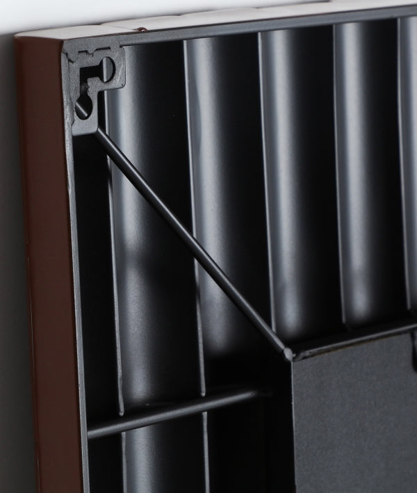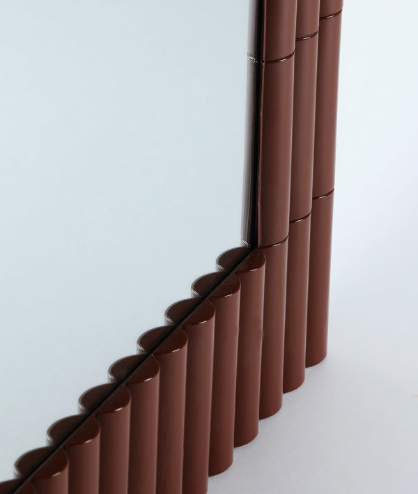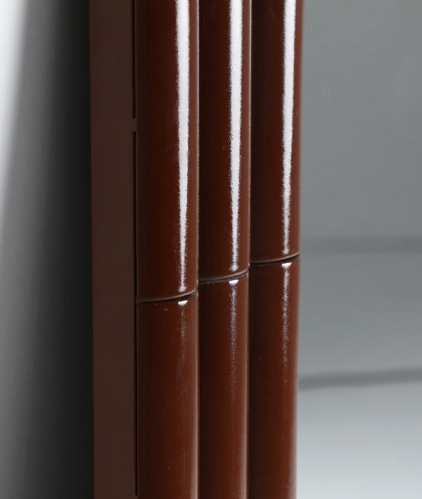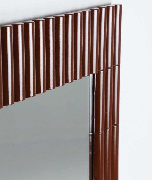 Le miroir Menton carré apporte profondeur et chaleur grâce à sa finition laquée brune. Son cadre en fer cannelé crée un élégant jeu d'ombres, ce qui en fait un élément décoratif idéal pour les espaces résidentiels et les projets commerciaux en quête d'une touche de subtilité.