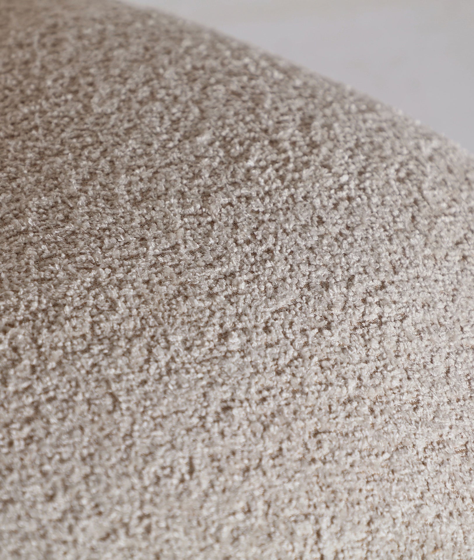 Matière, couleur et finitions : Coton bouclé beige, combiné avec du bois de pin noir et mousse