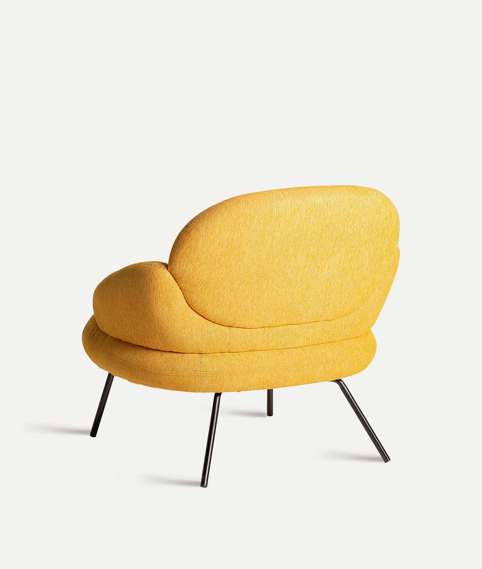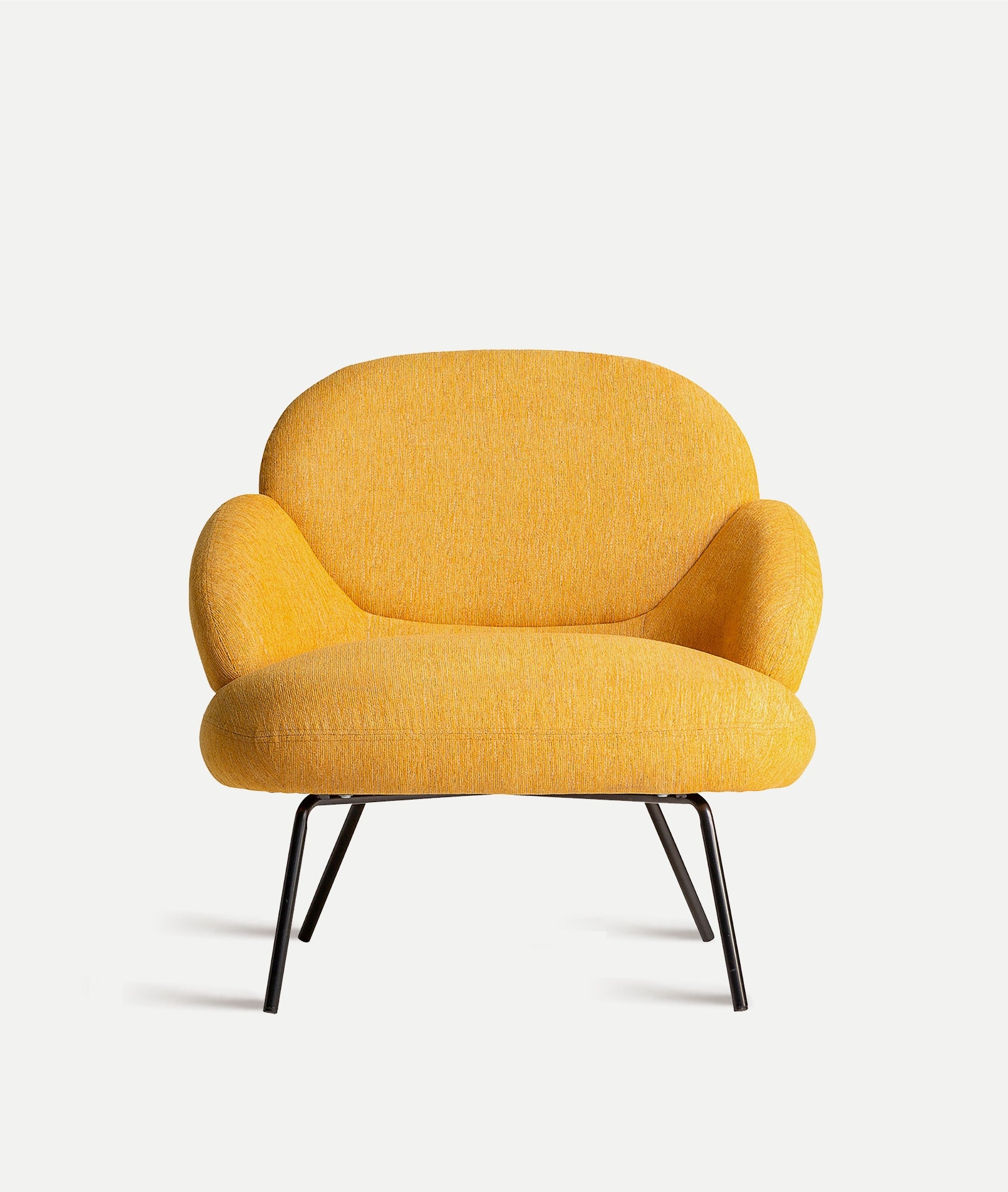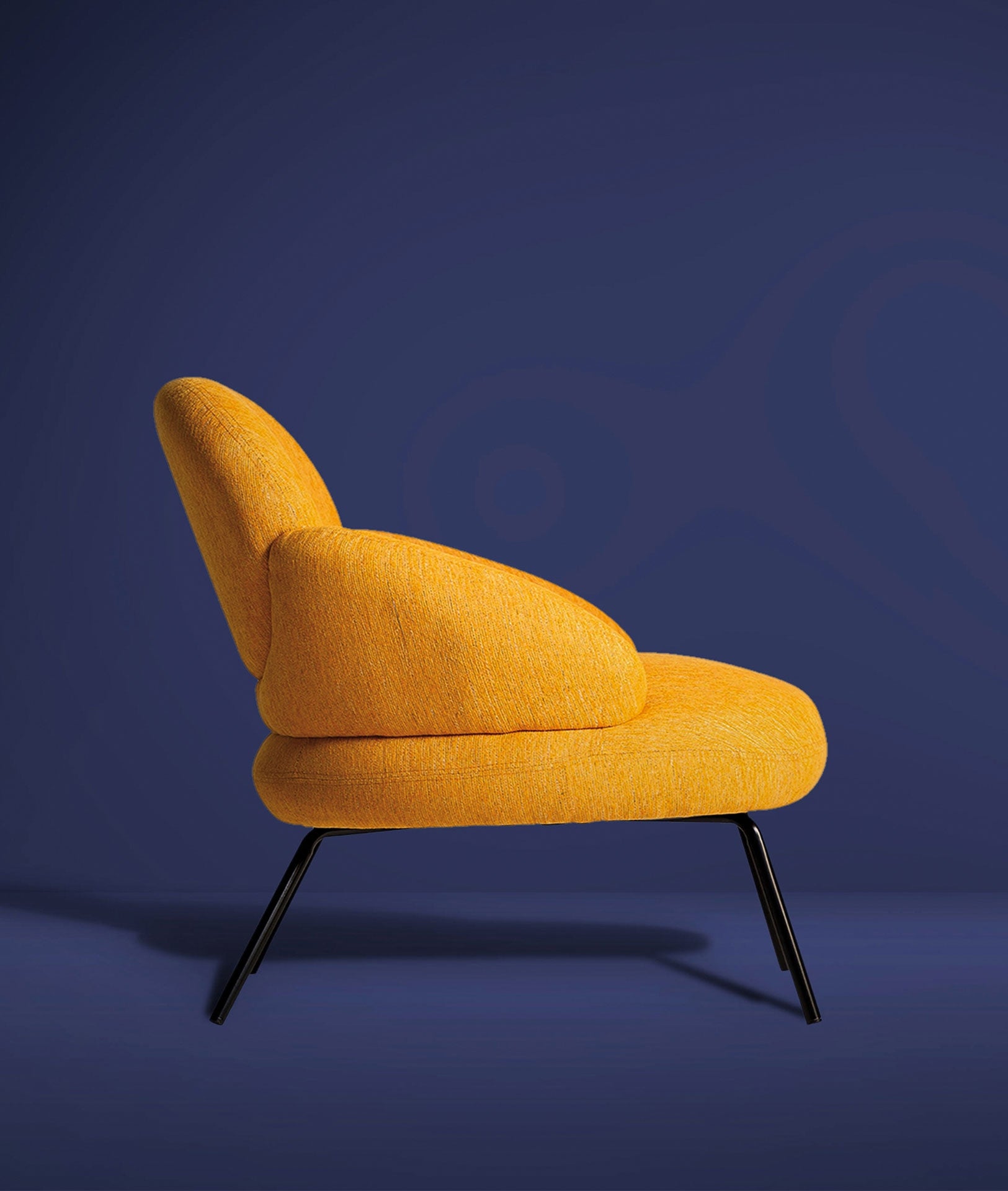 Matière, couleur et finitions : Chenille à la moutarde, combinée à du fer en noir et de la mousse