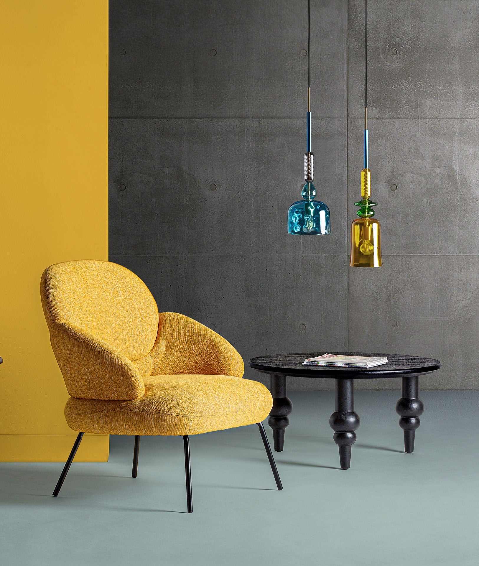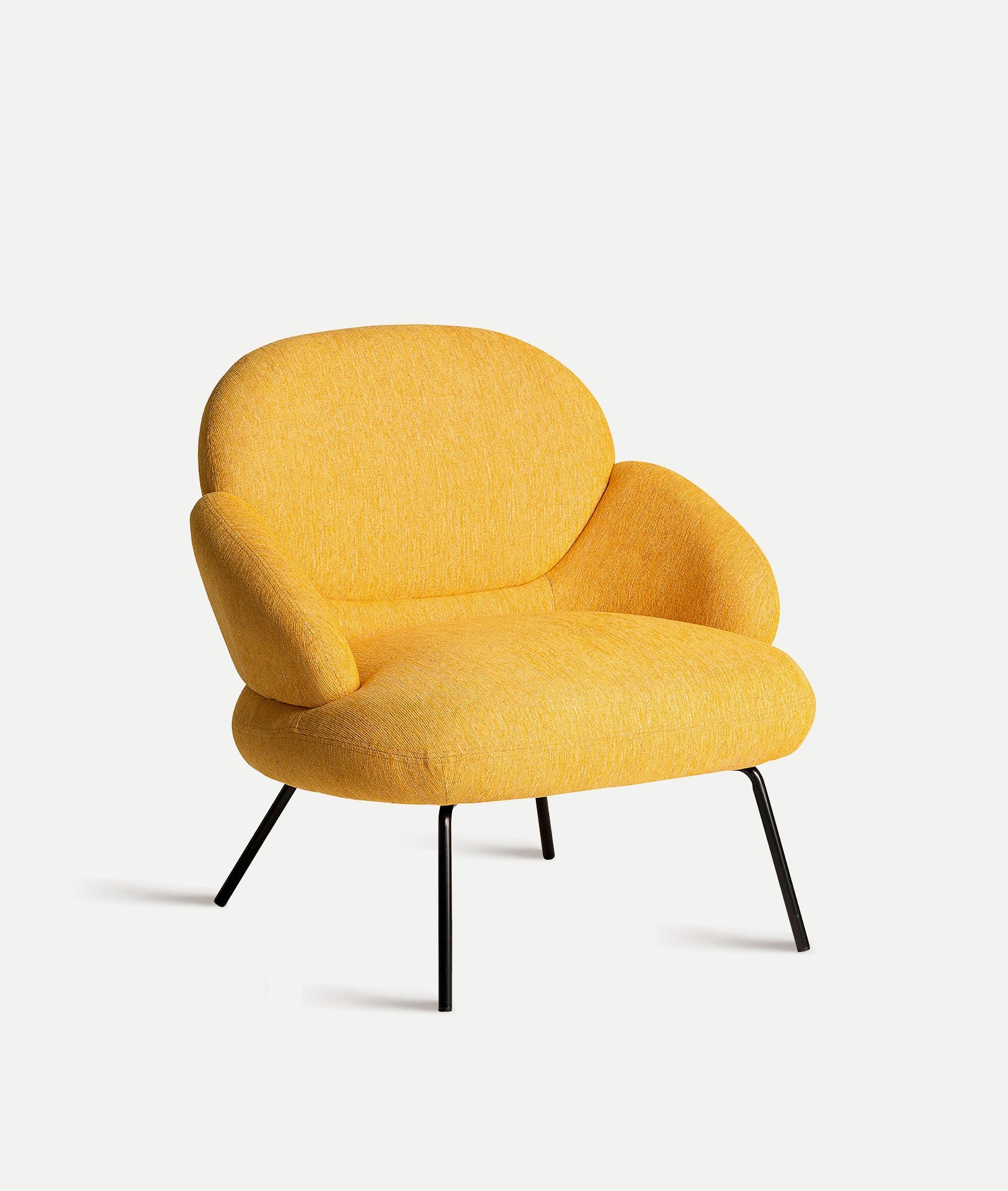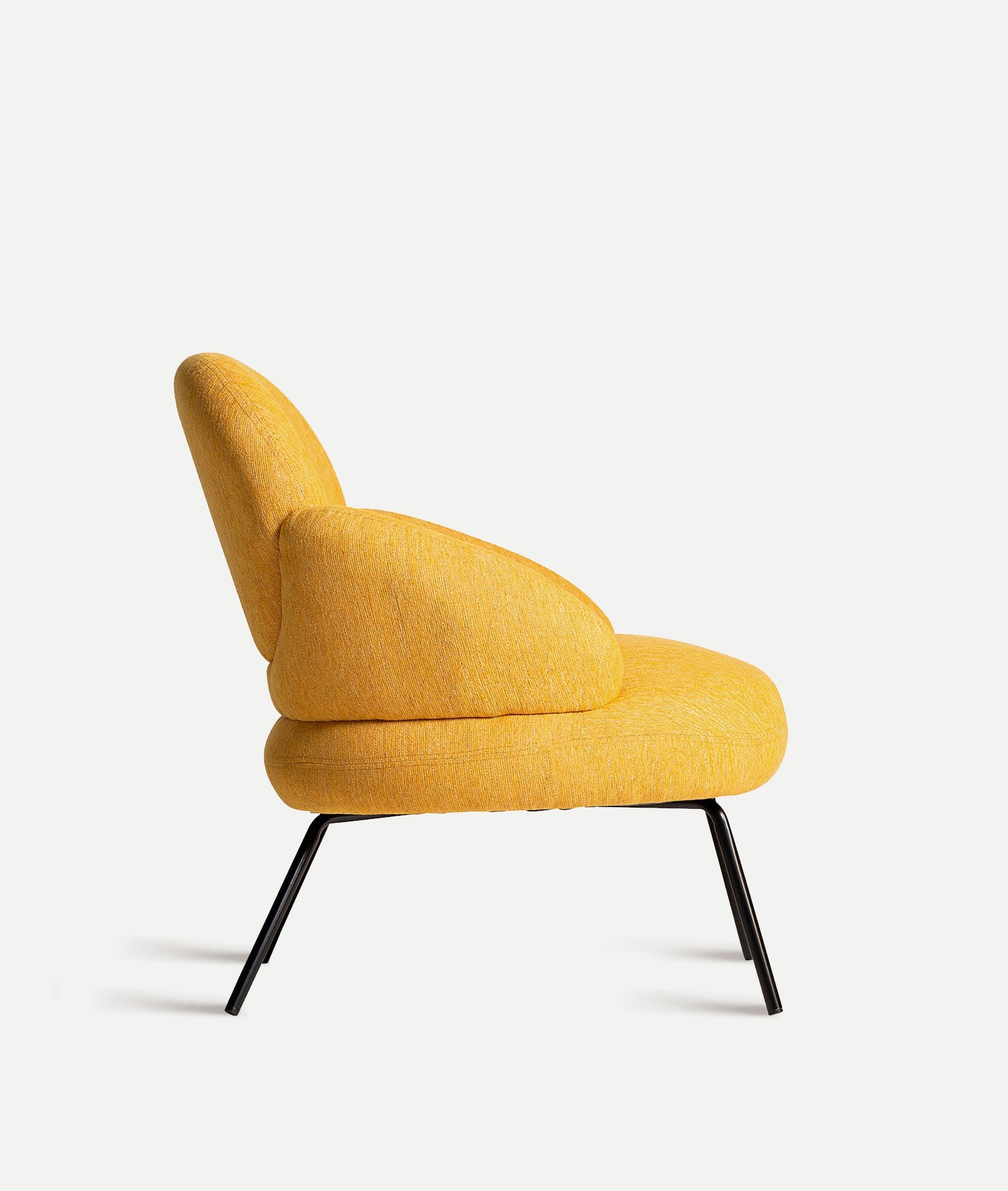 Matière, couleur et finitions : Chenille à la moutarde, combinée à du fer en noir et de la mousse