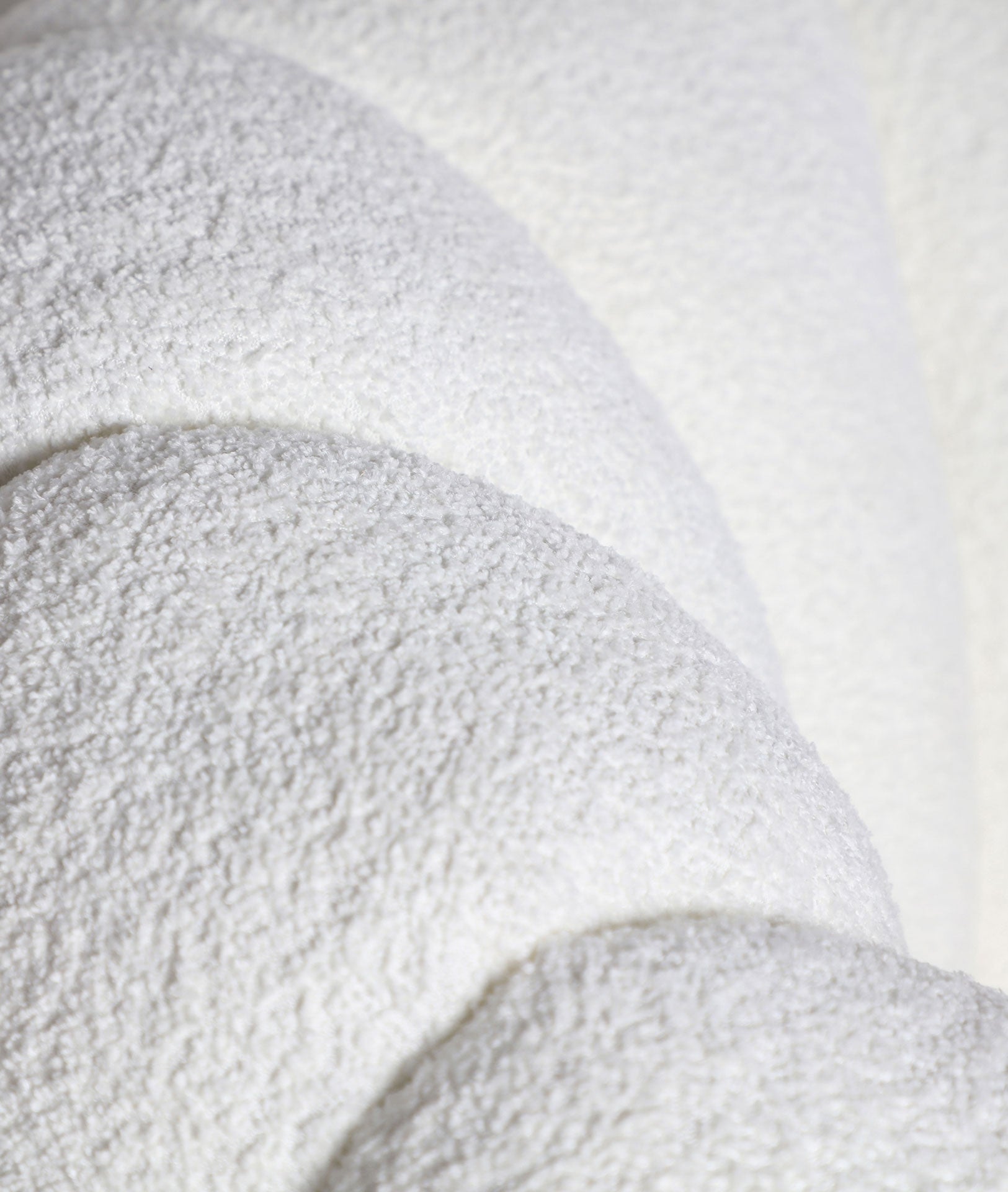 Matière, couleur et finitions : Coton bouclé en blanc, combiné à l'acier doré
