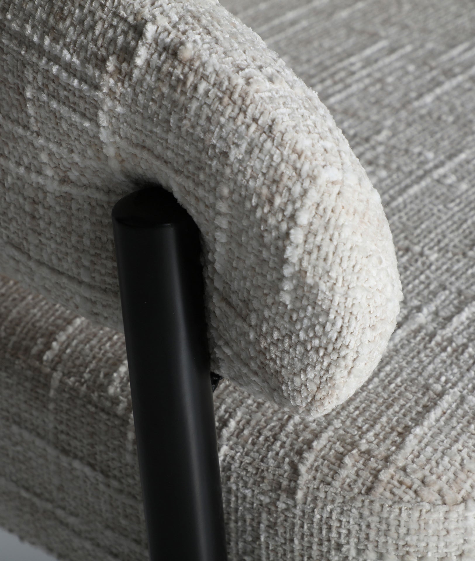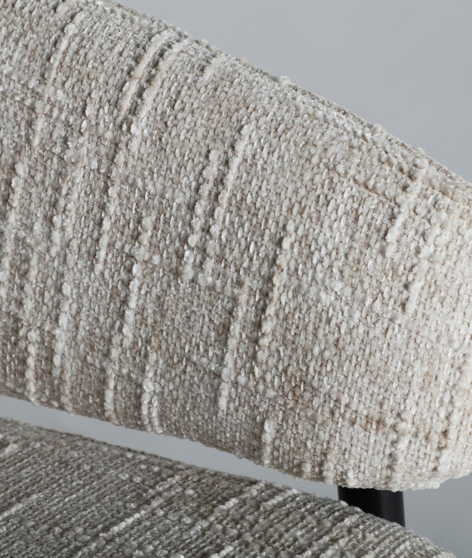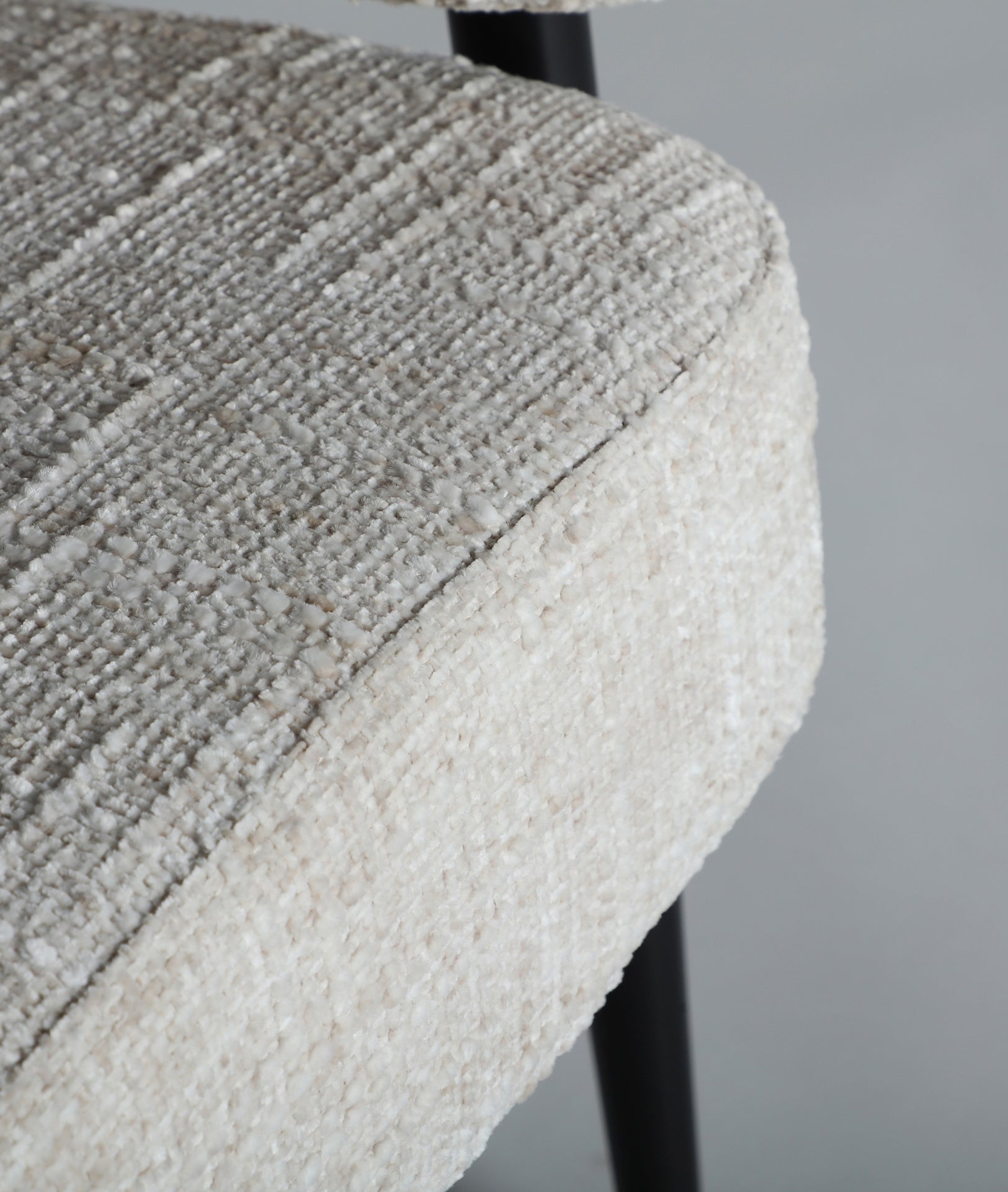 Un design contemporain qui fusionne textures et formes. La chaise SERS, avec sa structure en bois et ses détails en métal noir, est une pièce polyvalente qui offre à la fois style et confort dans n'importe quel cadre.