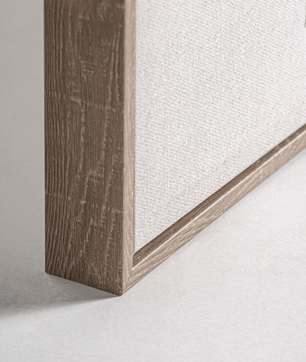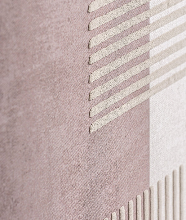 JEREANE joue avec une esthétique Art déco et une palette de tons doux. Sa composition graphique sur toile artisanale, associée au polyester et au bois de pin, crée une pièce équilibrée, idéale pour les espaces à la recherche d'une touche d'élégance et de modernité.