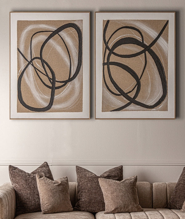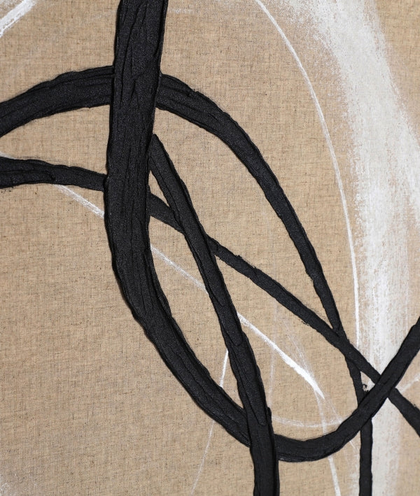 Le tableau GABRIELLE est une œuvre contemporaine alliant lignes fluides et contrastes graphiques sur une toile beige. Sa finition artisanale et son cadre en pin brun clair lui confèrent chaleur et naturel. Idéal pour dynamiser les intérieurs modernes.