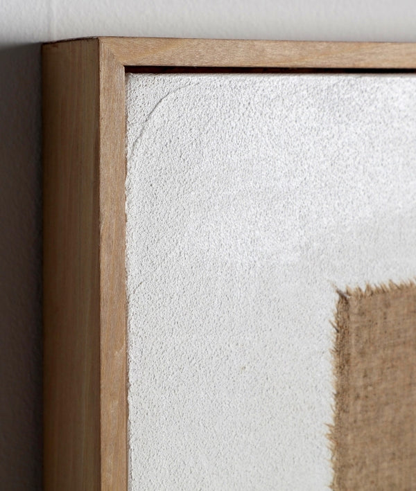 œuvre d'art contemporaine avec cadre en bois de pin brun clair