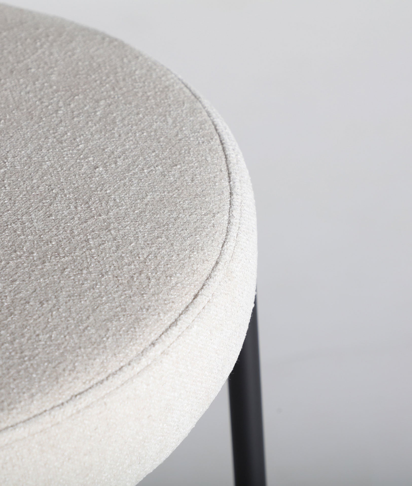 Chaise haute en tissu blanc cassé combiné avec du fer noir.