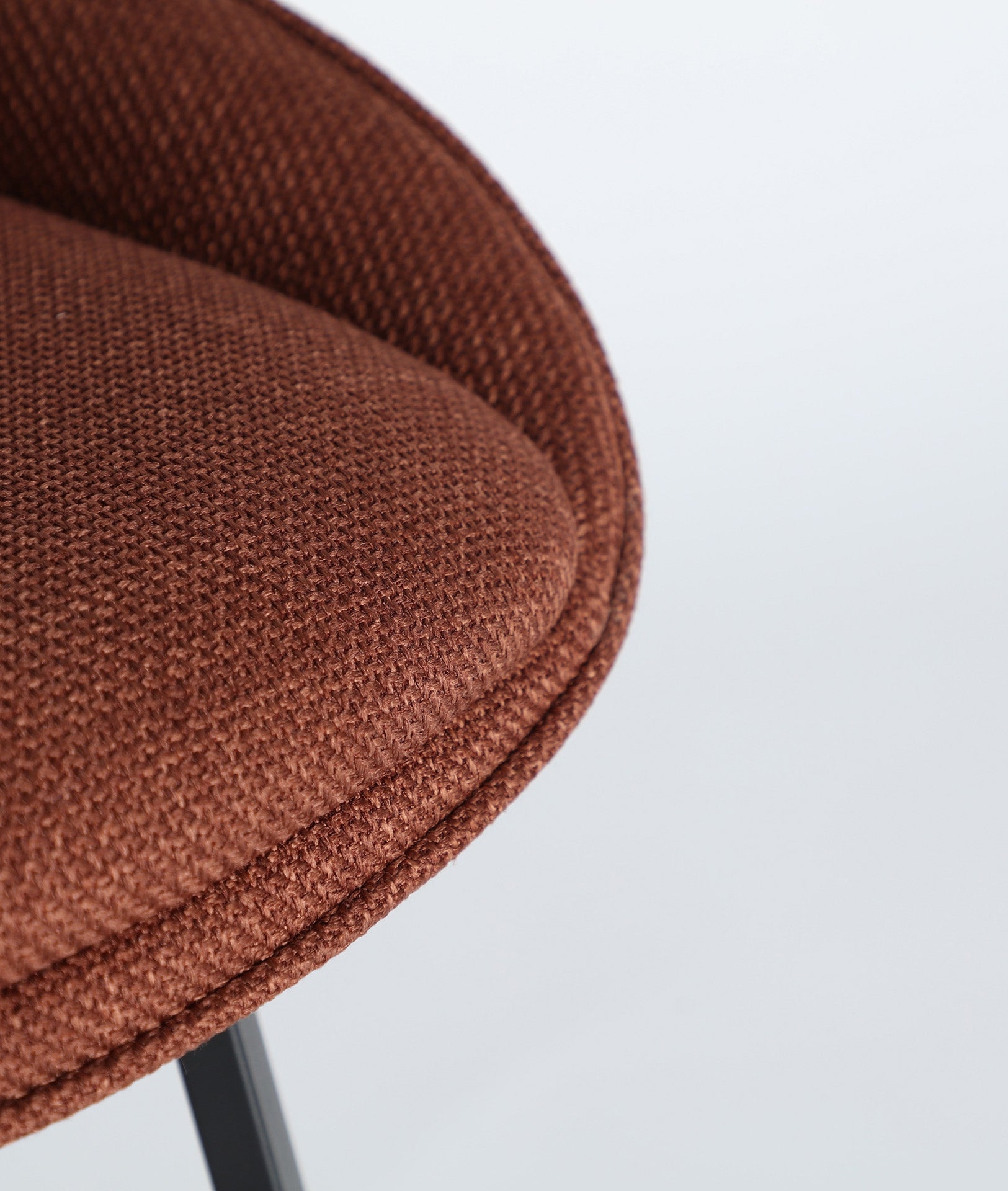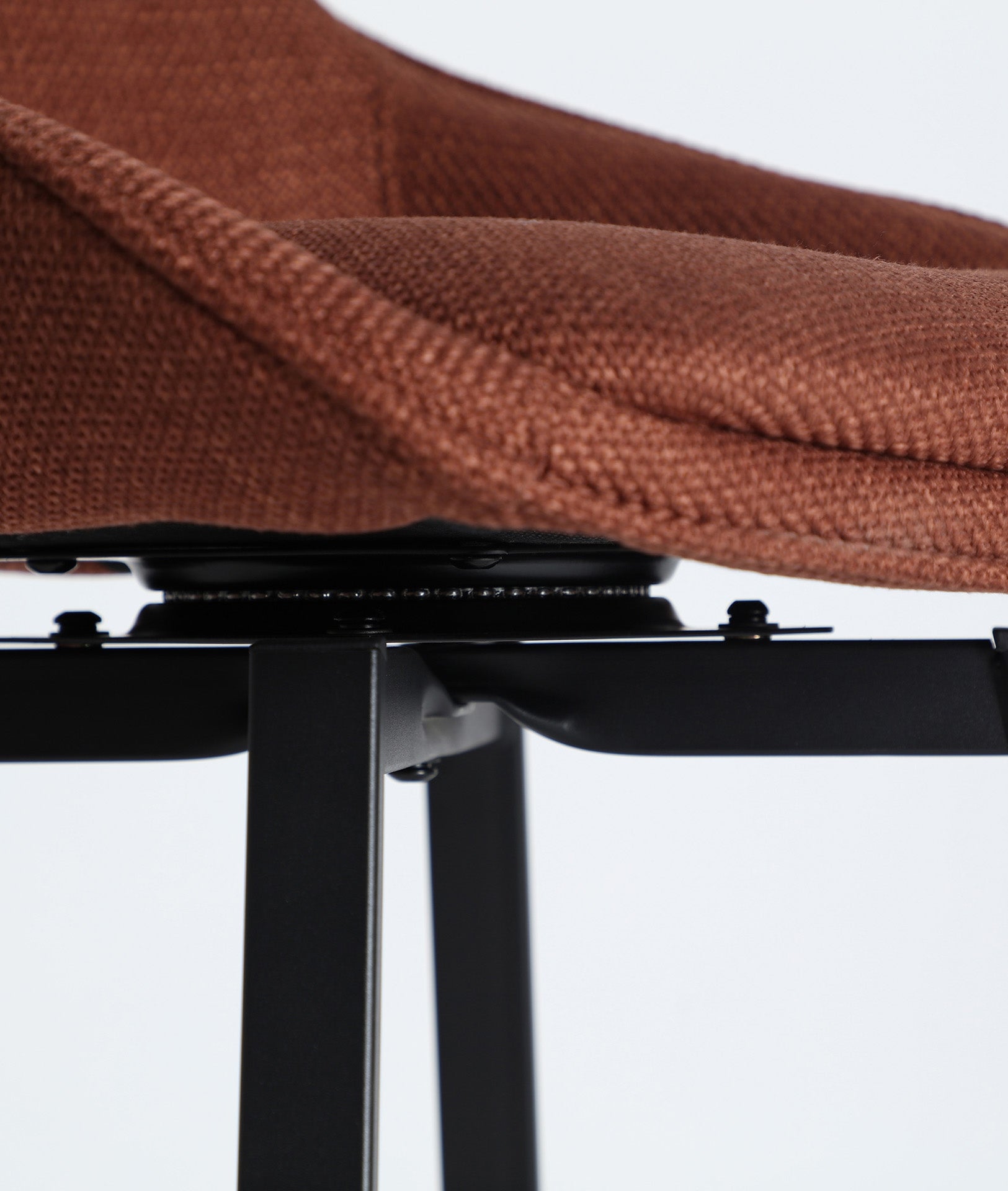 Chaise haute en acier noir combiné avec du contreplaqué noir et du polyester rouge foncé