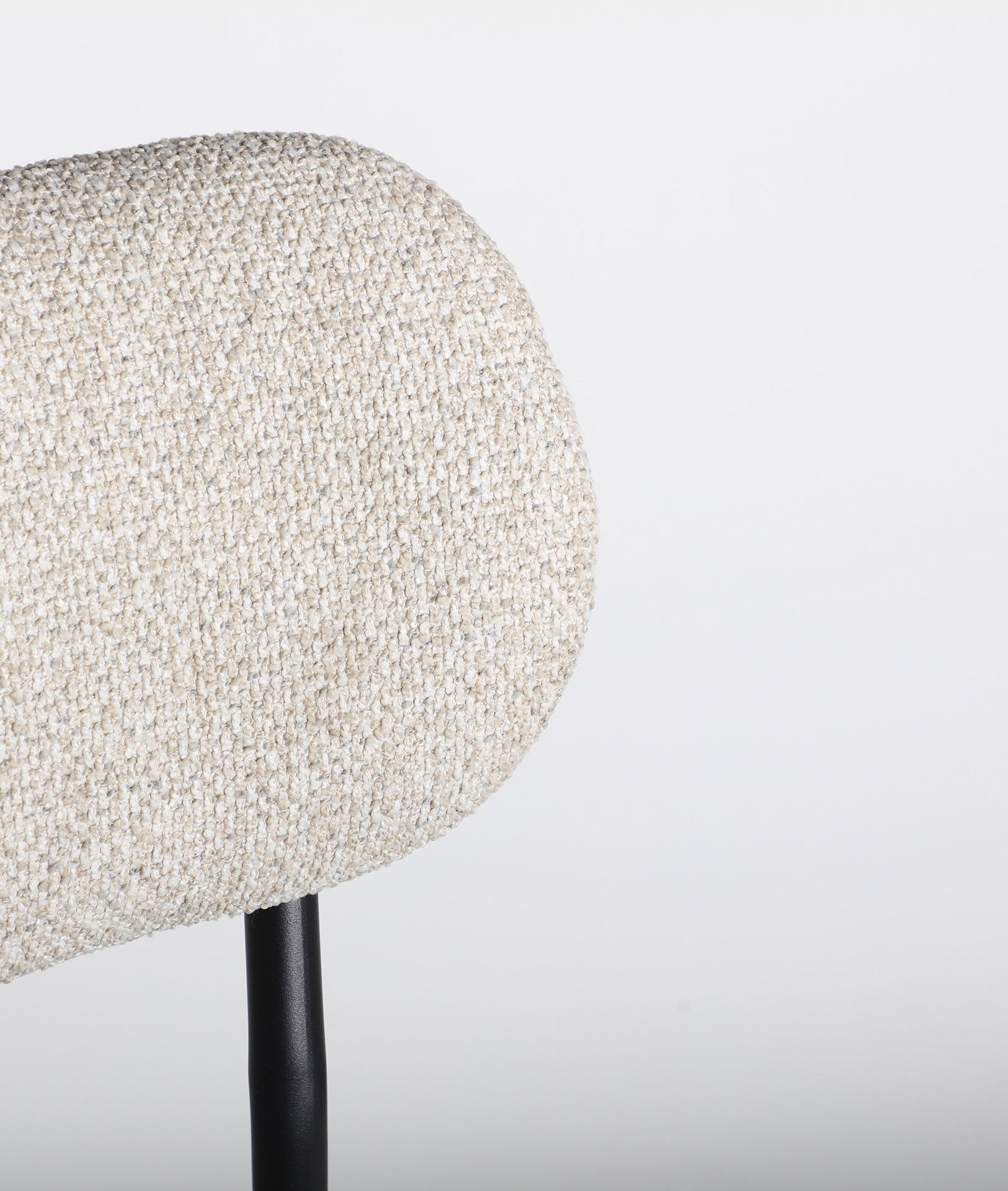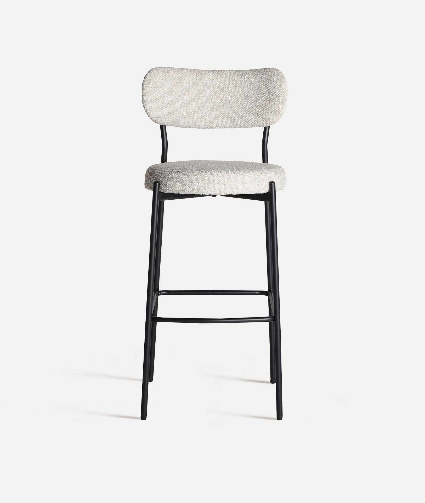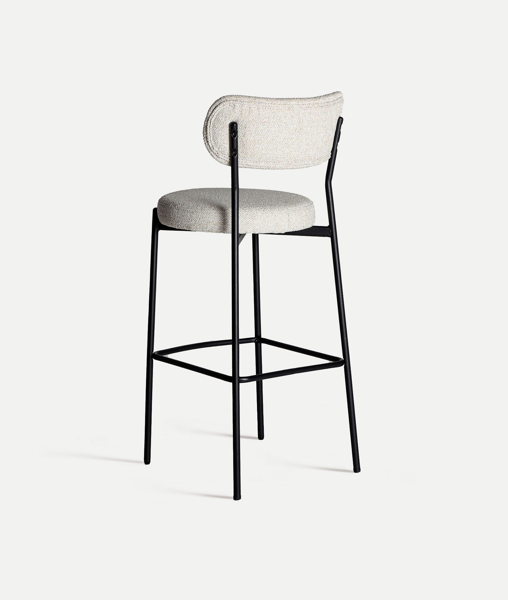 Chaise de bar haute moderne en tissu blanc cassé combiné avec du fer noir.