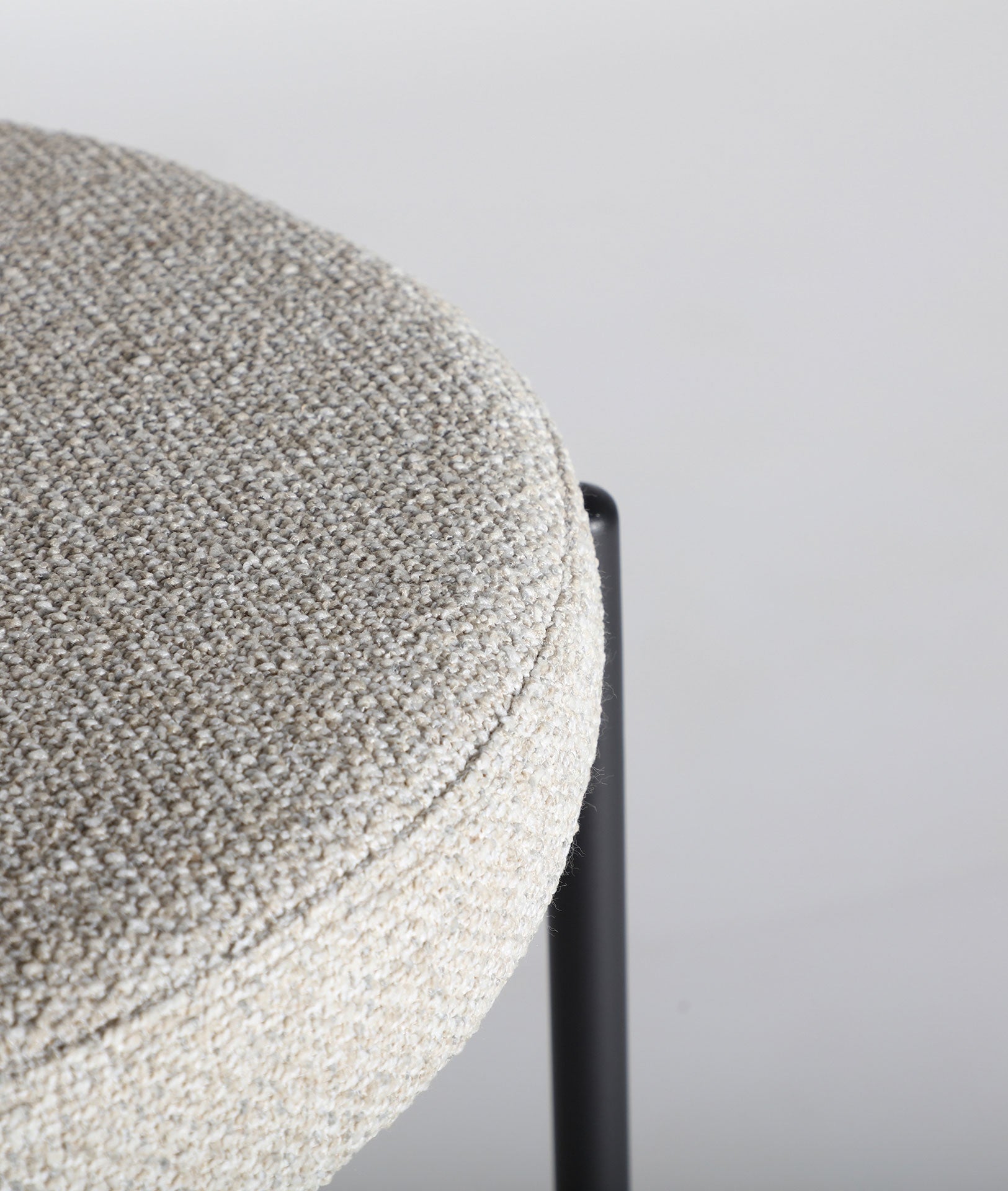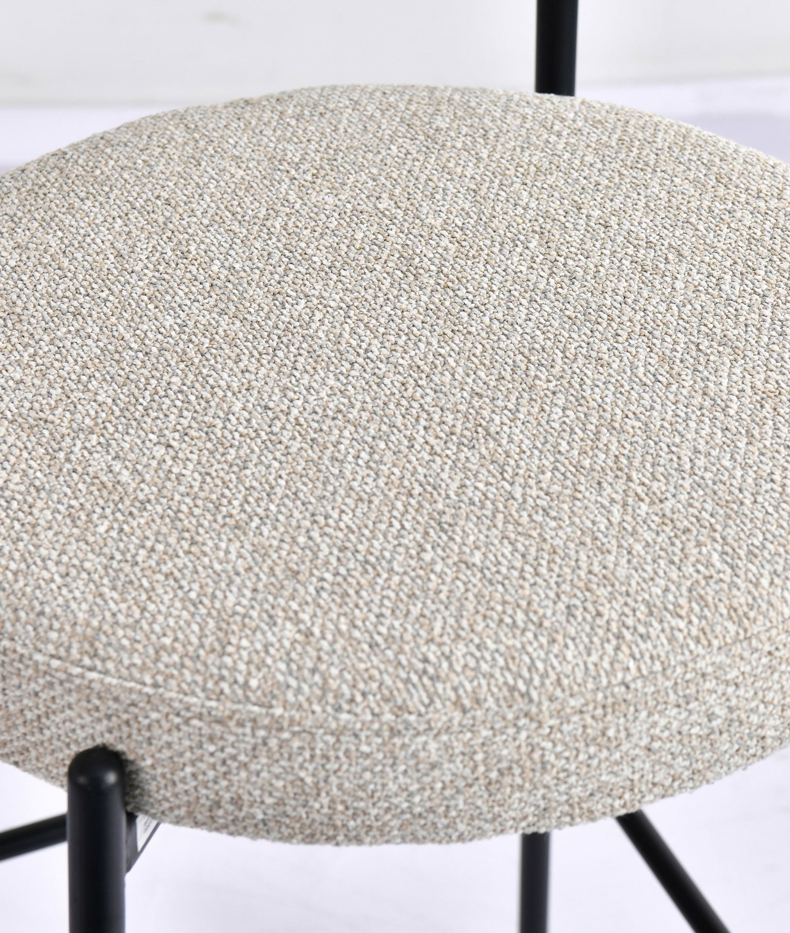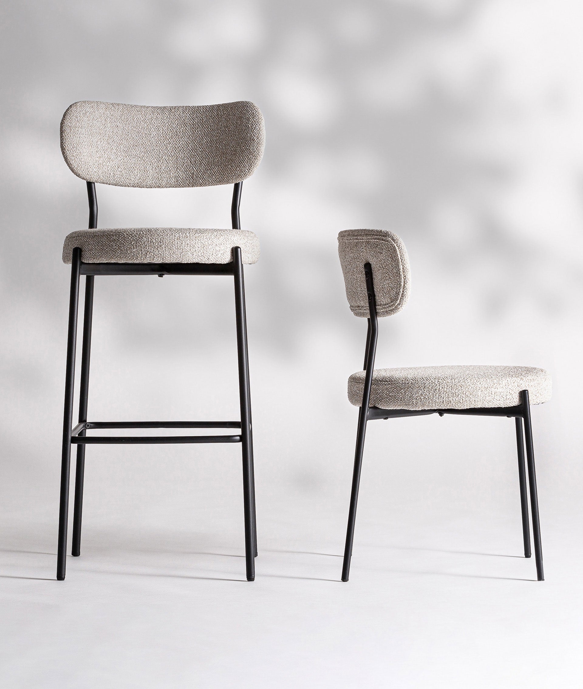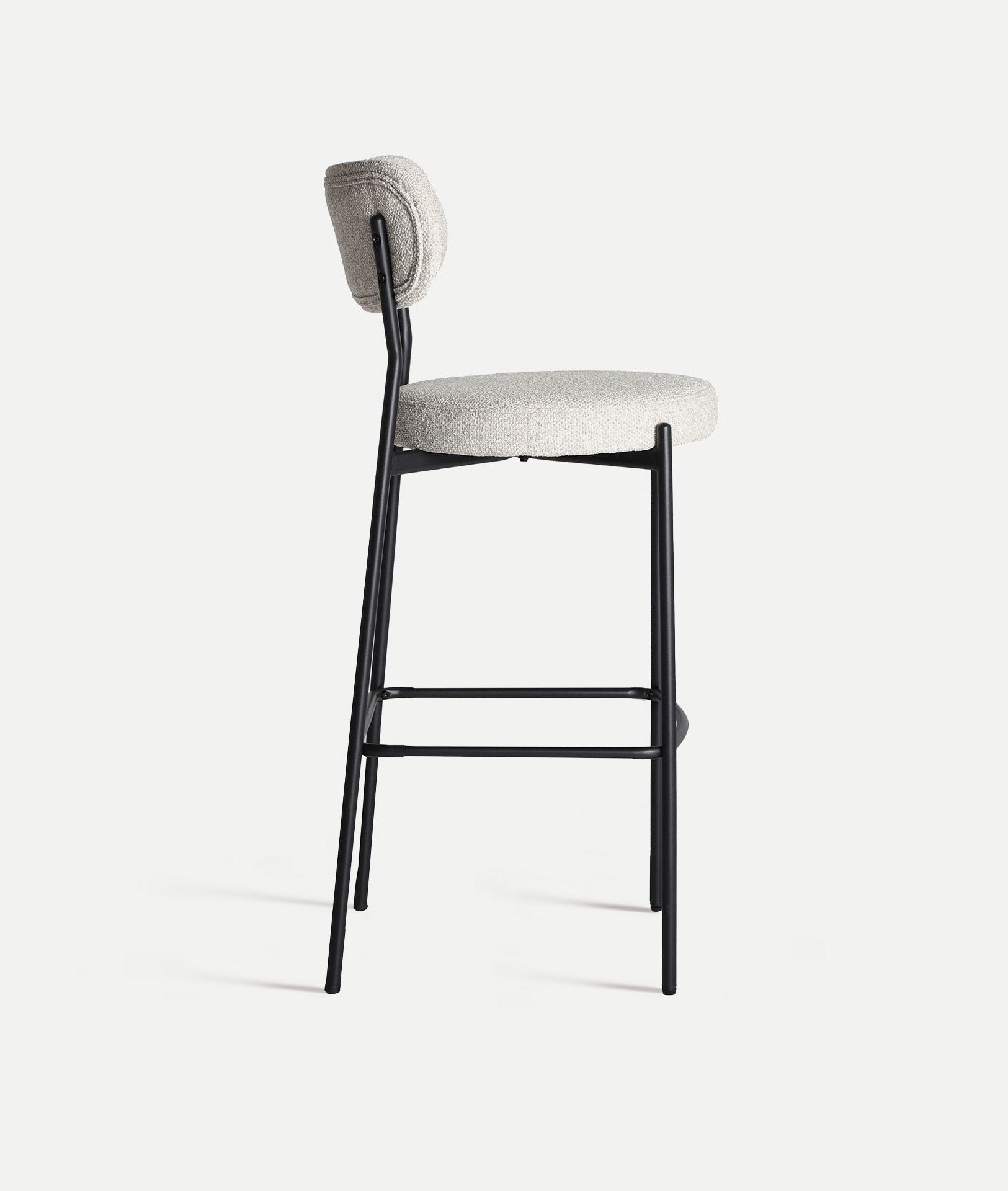 Chaise de bar haute moderne en tissu blanc cassé combiné avec du fer noir.
