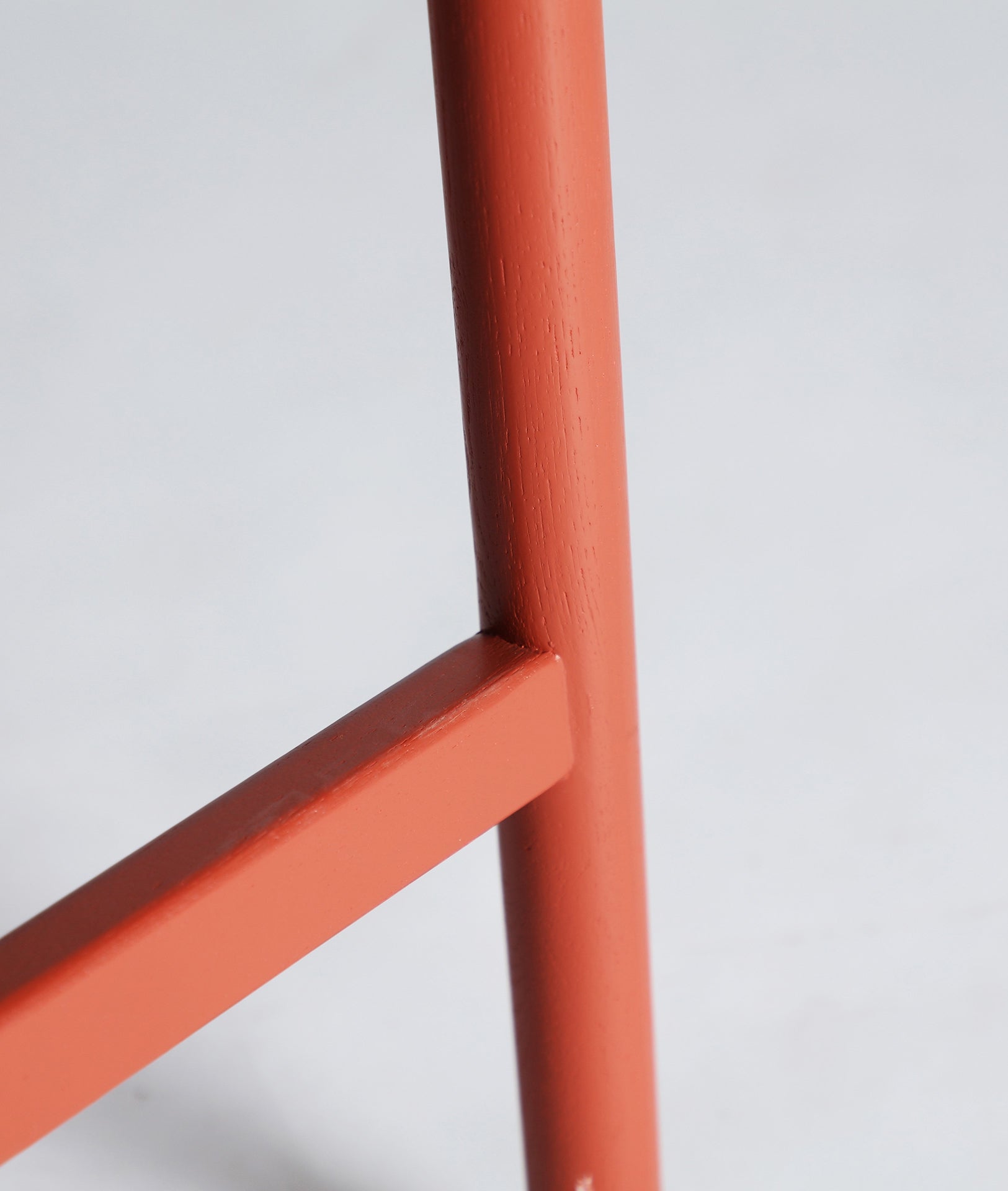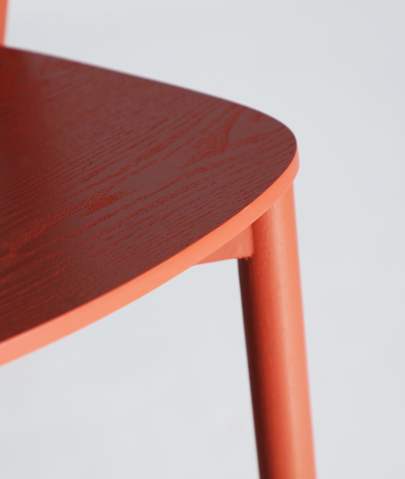 Chaise haute de bar design en bois de frêne de couleur corail
